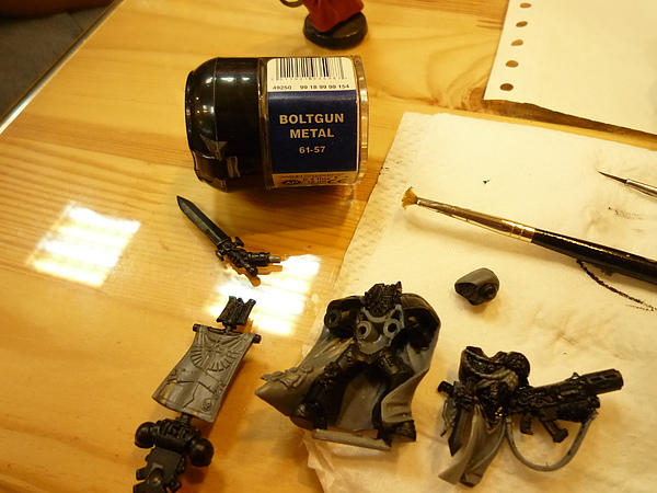 把盔甲與部分金屬的地方先上黑色,接著使用BOLTGUN METAL將黑色部分塗上銀色。