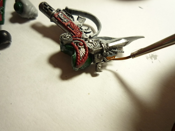 然後使用DARK ANGEL GREEN將盔甲的部份塗上暗綠色。