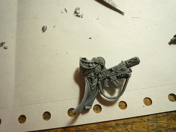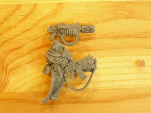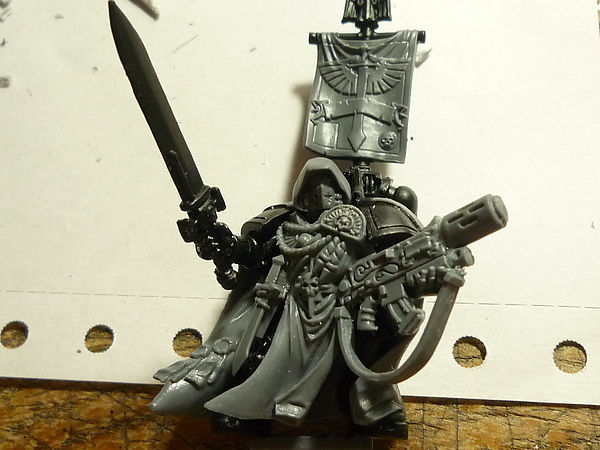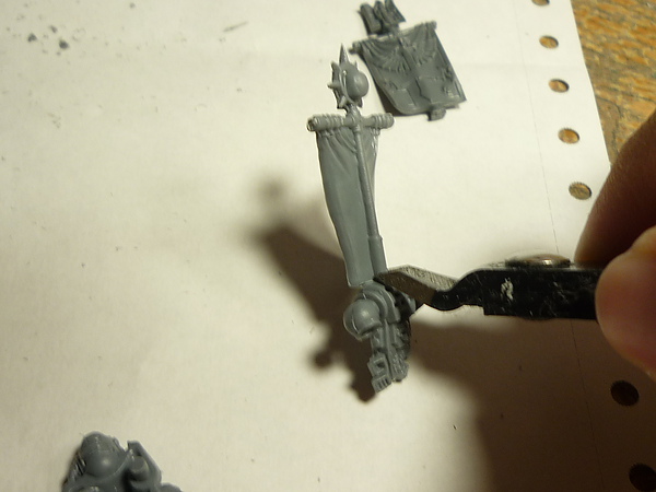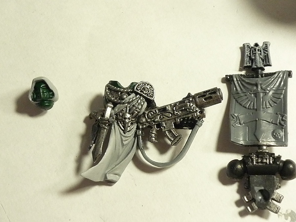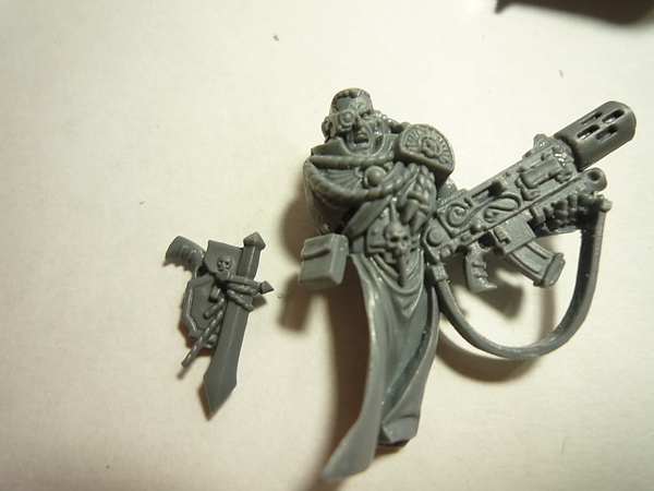 本週我們將先介紹北極熊這邊的星際戰士,今天要介紹的是一個軍隊最重要的人物,也就是指揮官。首先因為黑峽突襲中的指揮官配製的武器是機關槍,並不符合北極熊所撰寫暗黑天使戰團軍備表的需求。於是使用簡單的工具(筆刀、模型鉗、模型膠)完成簡單卻有效的改造。